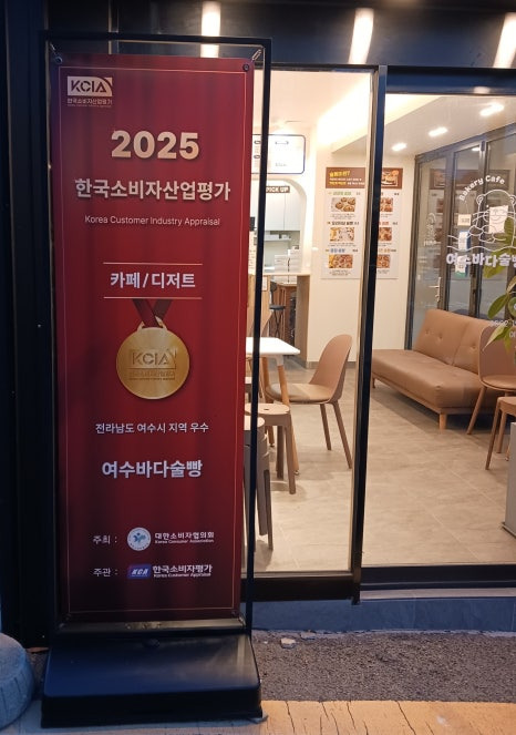 또한, 2025년 한국소비자산업평가에서 여수 디저트 카페 부문 우수 평가를 받은 곳이어서 신뢰감이 더해졌습니다.